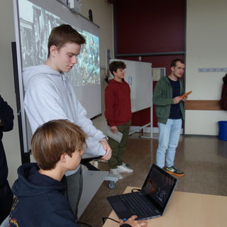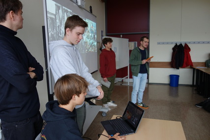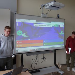 Um das von ihnen vermittelte Wissen in der Klasse abschließend zu testen und die Schüler*innen interaktiv einzubinden, hatte diese Gruppe ein Quiz erstellt, an dem die Schüler*innen über ihre Smartphones teilnahmen.
