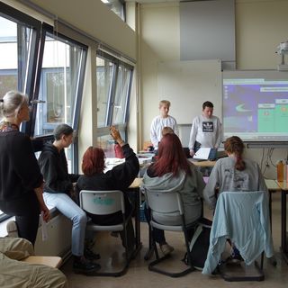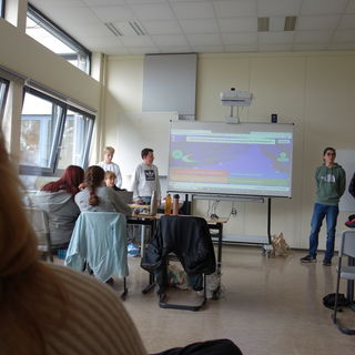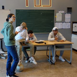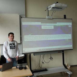 Zum zweiten Mal an diesem Tag wurden die Schüler*innen interaktiv eingebunden. Die Gruppe hatte sich dazu entschieden, ein Quiz zu erstellen, in dem es nicht rein darum ging das Wissen ihrer Mitschüler*innen zu examinieren, sondern ihnen zwischen den Teilfragen die historischen Hintergründe des Zeitraumes um 1989 zu erläutern. So stellten sie sich und der Klasse u.a. die Fragen: Welche Auswirkungen hatte die Wiedervereinigung auf die Arbeitslosigkeit auf dem Gebiet der ehemaligen DRR? Was passierte mit der Wirtschaft im Osten nach dem Fall der Mauer? In welchem Teil Deutschlands gab es progressivere Frauenrechte? Und welchen Vorurteilen waren Menschen aus der DDR vor und nach 1989 ausgesetzt?