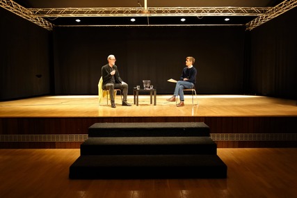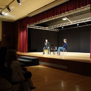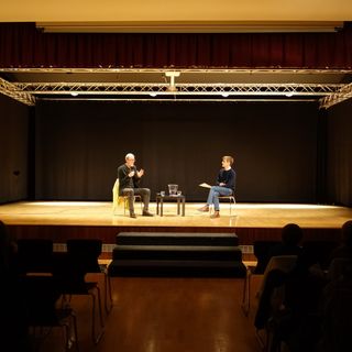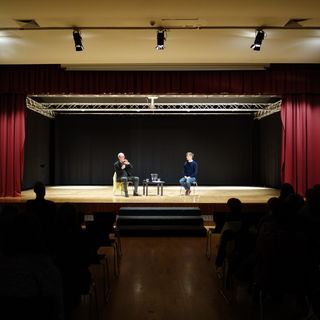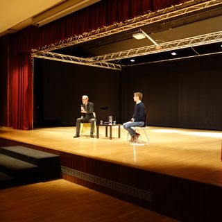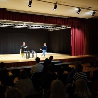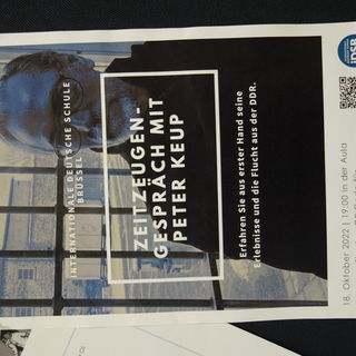 Der Abend des ersten Projekttages bot eine weitere Gelegenheit zum Austausch mit dem Zeitzeugen Peter Keup. Gemeinsam mit der Internationalen Deutschen Schule Brüssel lud die Deutsche Gesellschaft e. V. zu einem Interview mit Diskussion in die Aula ein. Die Veranstaltung bot Eltern, Schüler*innen und Interessierten abseits des Schulkontextes einen Einblick in die Lebensgeschichte Peter Keups. Die Veranstaltung bestach durch die Möglichkeit der Interaktion zwischen Referierendem und dem Publikum, aber auch durch die professionelle Moderation des ZDF Korrespondenten Gunnar Krüger. Krüger, dessen Kinder die Schule besuchen und der sich nach Anfrage der Schulleitung bereit erklärte das Gespräch zu moderieren, gelang es, das Gespräch zu lenken und das Publikum mit einzubeziehen. So konnte Peter Keup erneut über die Grenzen seiner eigenen subjektiven Einschätzungen hinweg, ein nuanciertes Bild seines Blicks auf die Geschichte der deutschen Teilung vermitteln. Für ihn steht seine und die Geschichte der deutschen Teilung und Wiedervereinigung komplementär zueinander. Seine Erzählung und die Verwobenheit seines individuellen Schicksals mit einem größeren geschichtlichen Ereignis ermöglichte eine Mikroansicht des historischen Prozesses und das war Peter Keups Verdienst an diesem Abend.